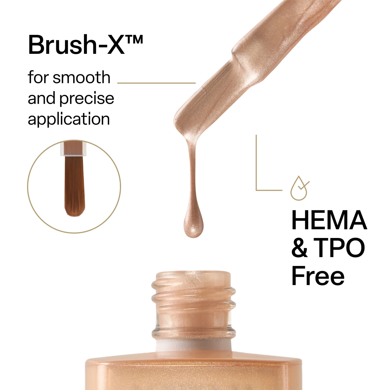 Plus, each shade comes with our game-changing Brush-X™ in-bottle. Made of dense PBT fibers and inspired by Japanese art brushes, Brush-X™ makes it easier for you to achieve a precise, even application every time.